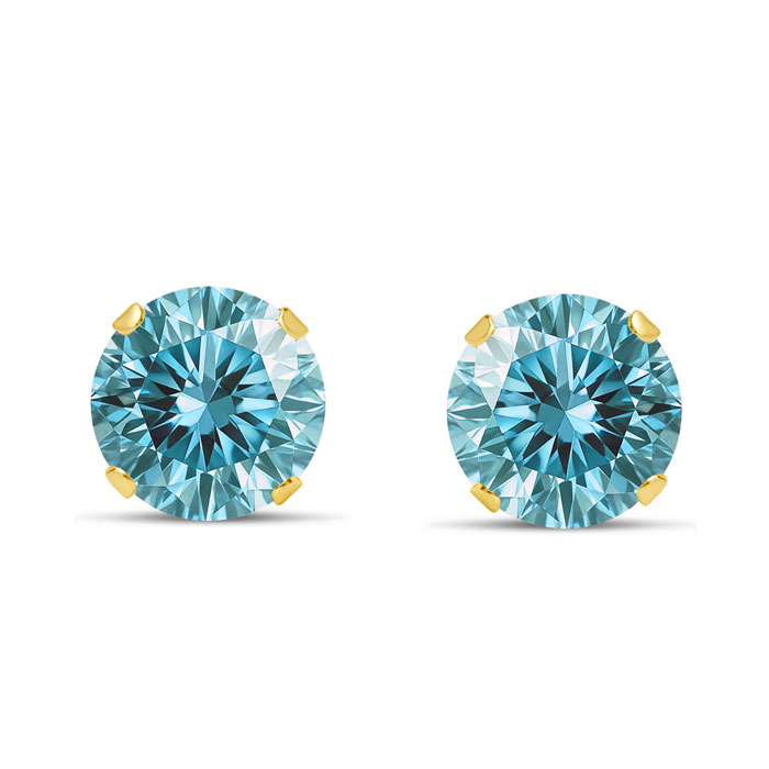 1 Carat Blue Moissanite Stud Earrings In Yellow Gold