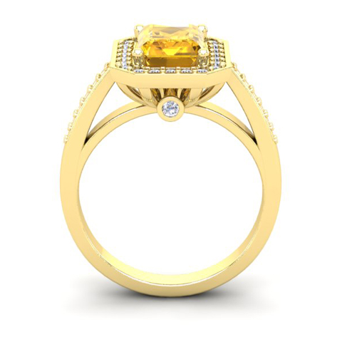 1 Carat Citrine and Halo Diamond Ring In 14 Karat Yellow Gold