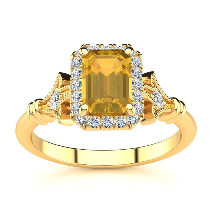 Retrograde Birthstones™ 1 Carat Citrine and Halo Diamond Vintage Ring In 14 Karat Yellow Gold