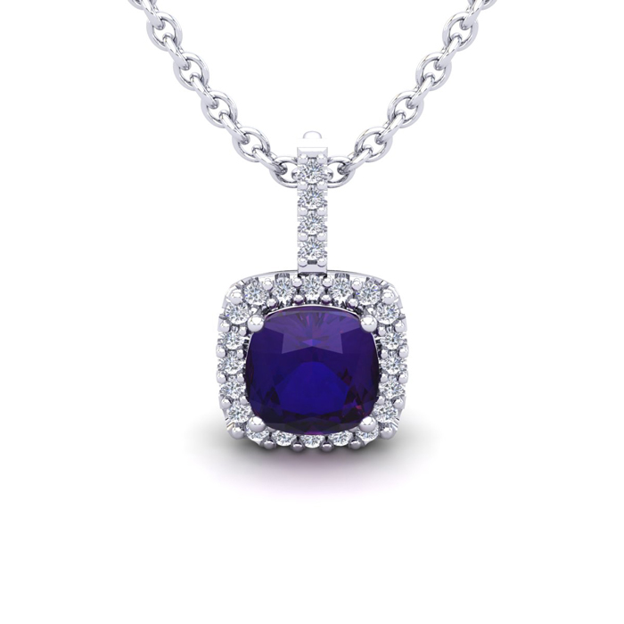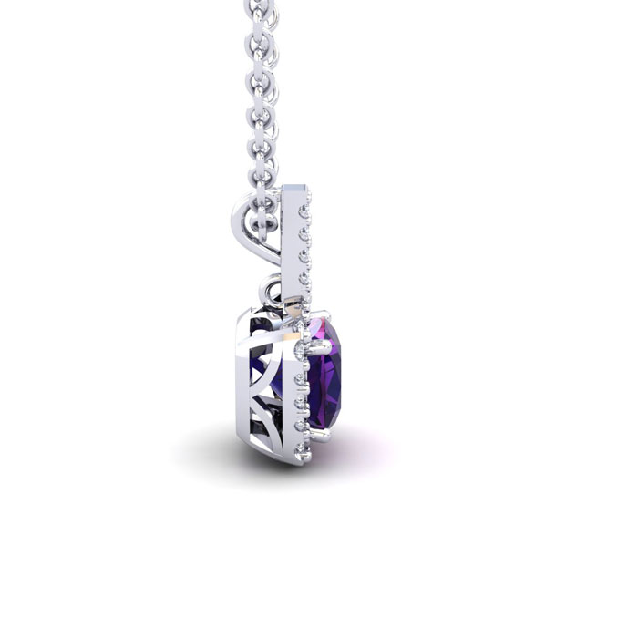 1 Carat Cushion Cut Amethyst and Halo Diamond Necklace In 14 Karat White Gold, 18 Inches