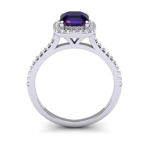 1 Carat Cushion Cut Amethyst and Halo Diamond Ring In 14K White Gold