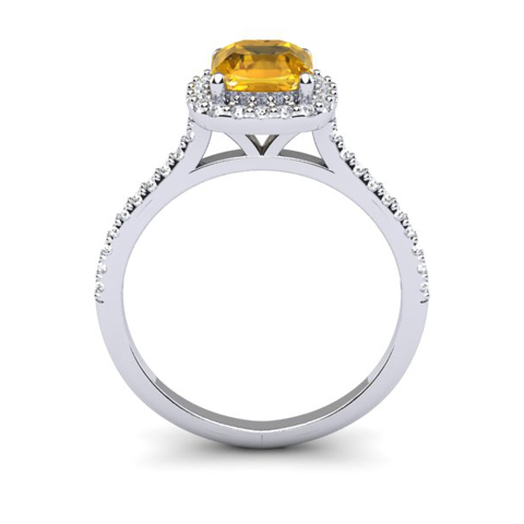 1 Carat Cushion Cut Citrine and Halo Diamond Ring In 14K White Gold