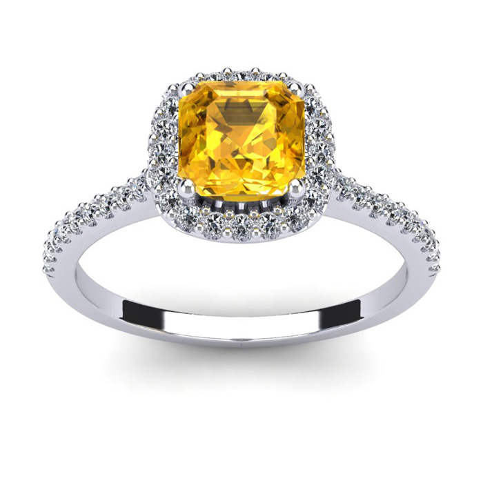 1 Carat Cushion Cut Citrine and Halo Diamond Ring In 14K White Gold