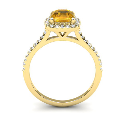 1 Carat Cushion Cut Citrine and Halo Diamond Ring In 14K Yellow Gold