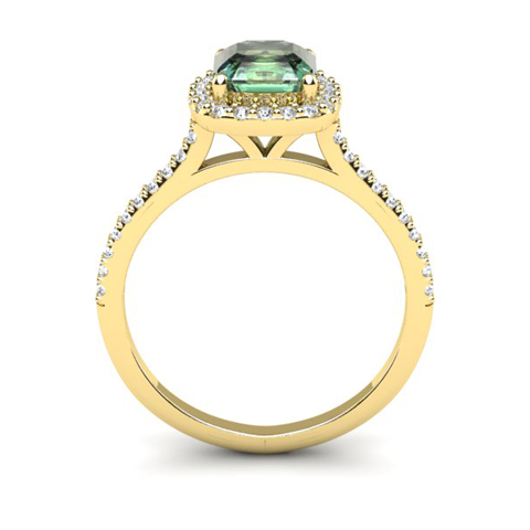 1 Carat Cushion Cut Green Amethyst and Halo Diamond Ring In 14K Yellow Gold
