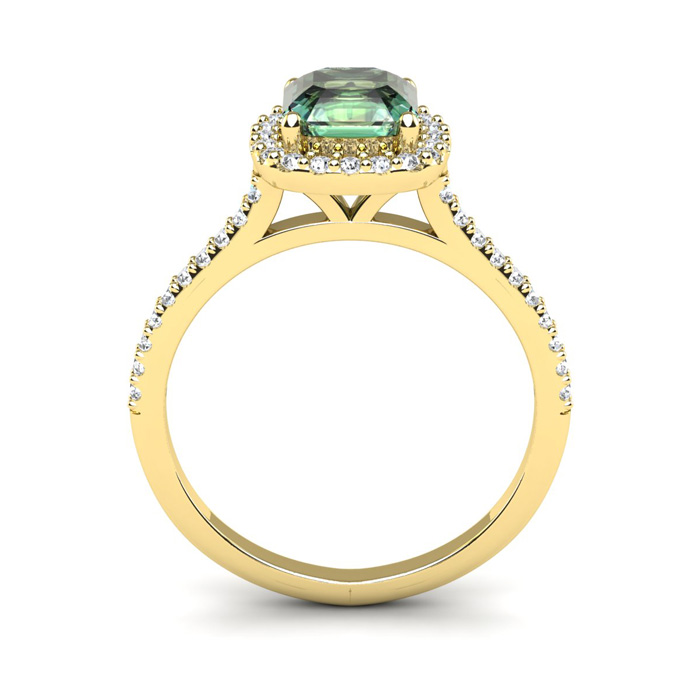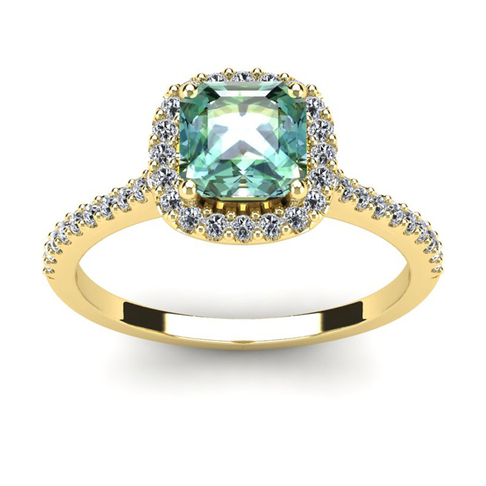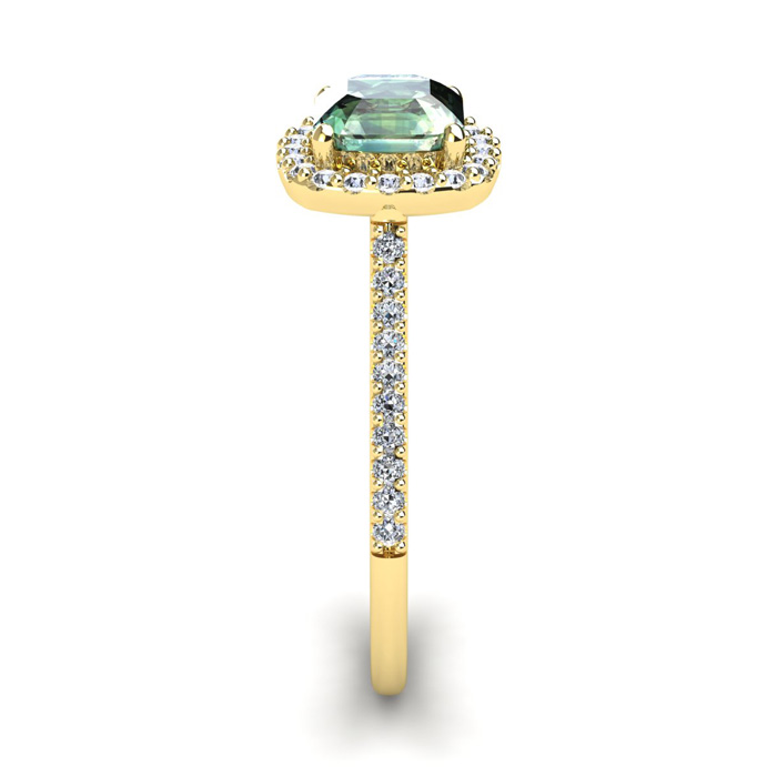 1 Carat Cushion Cut Green Amethyst and Halo Diamond Ring In 14K Yellow Gold