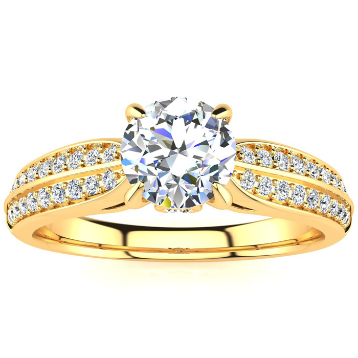 1 Carat Natural Diamond Engagement Ring In 14K Yellow Gold, 3/4 Carat Natural Center Diamond