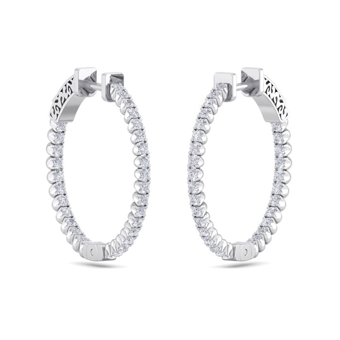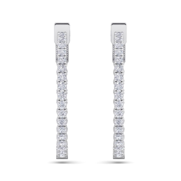 1 Carat Natural Diamond Hoop Earrings In 14 Karat White Gold, 3/4 Inch