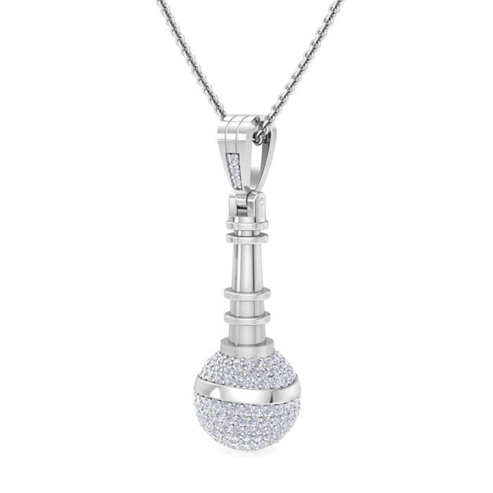 1 Carat Natural Diamond Microphone Necklace In 14 Karat White Gold, 18 Inches