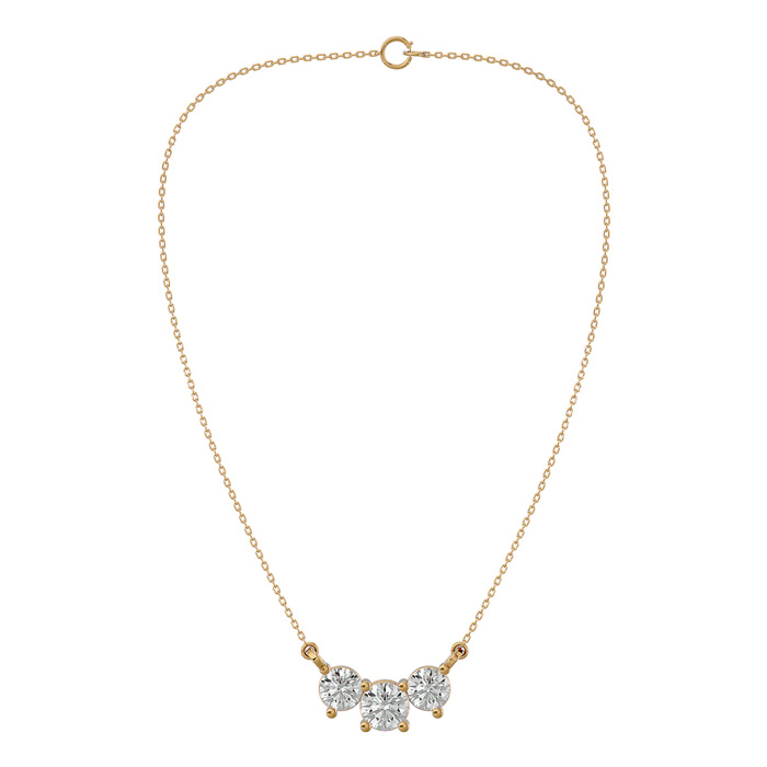 1 Carat Diamond Three Stone Necklace In 14 Karat Yellow Gold, 18 Inches