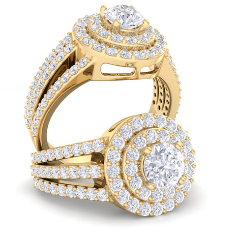 1 Carat Natural Double Halo Diamond Engagement Ring In 14 Karat Yellow Gold