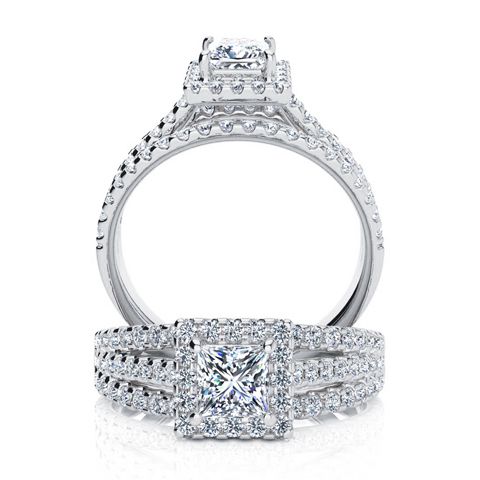 1 Carat Natural Elegant Princess Cut Halo Diamond Engagement Ring In 14 Karat White Gold