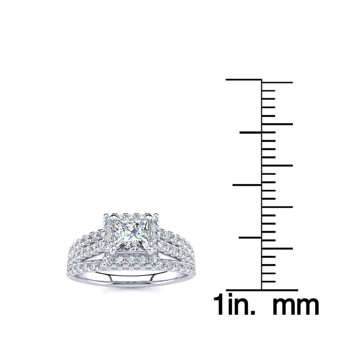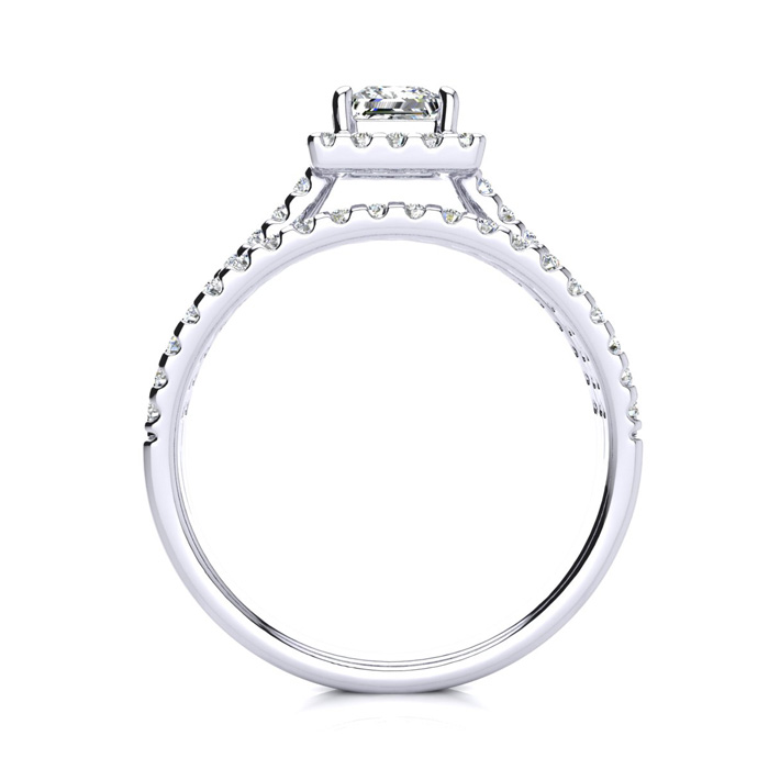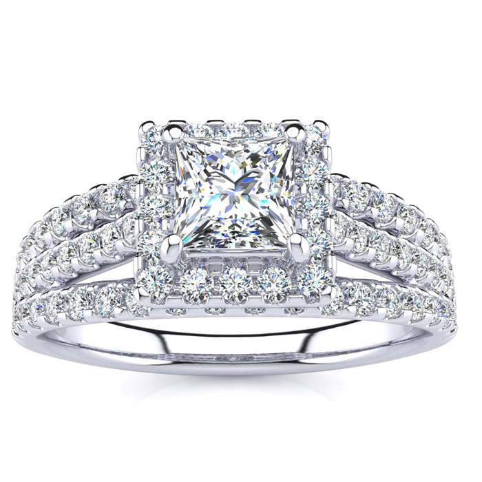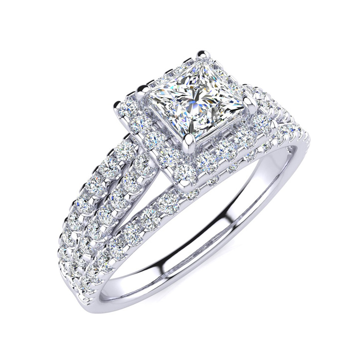 1 Carat Natural Elegant Princess Cut Halo Diamond Engagement Ring In 14 Karat White Gold