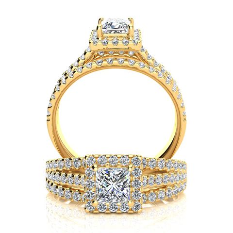 1 Carat Natural Elegant Princess Cut Halo Diamond Engagement Ring In 14 Karat Yellow Gold