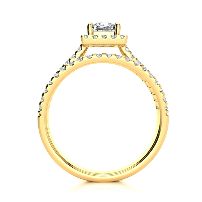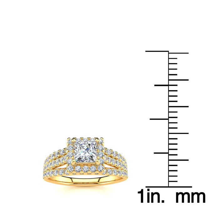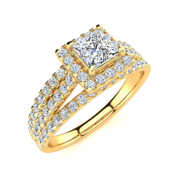 1 Carat Natural Elegant Princess Cut Halo Diamond Engagement Ring In 14 Karat Yellow Gold