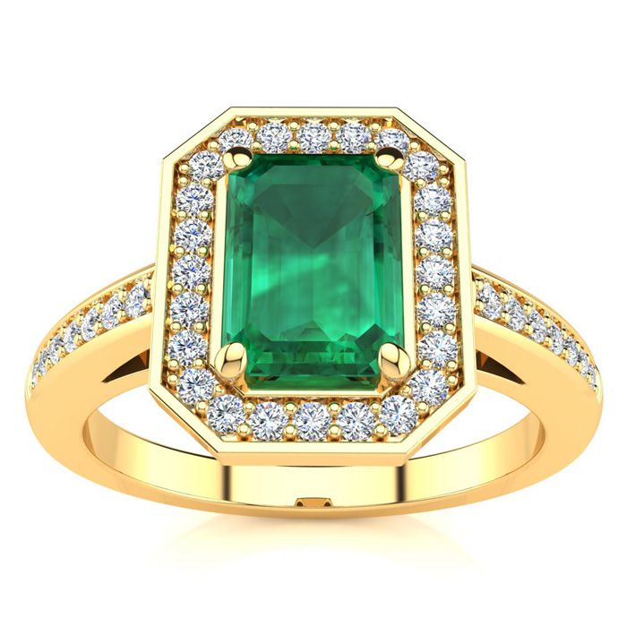 1 Carat Emerald and Halo Diamond Ring In 14 Karat Yellow Gold