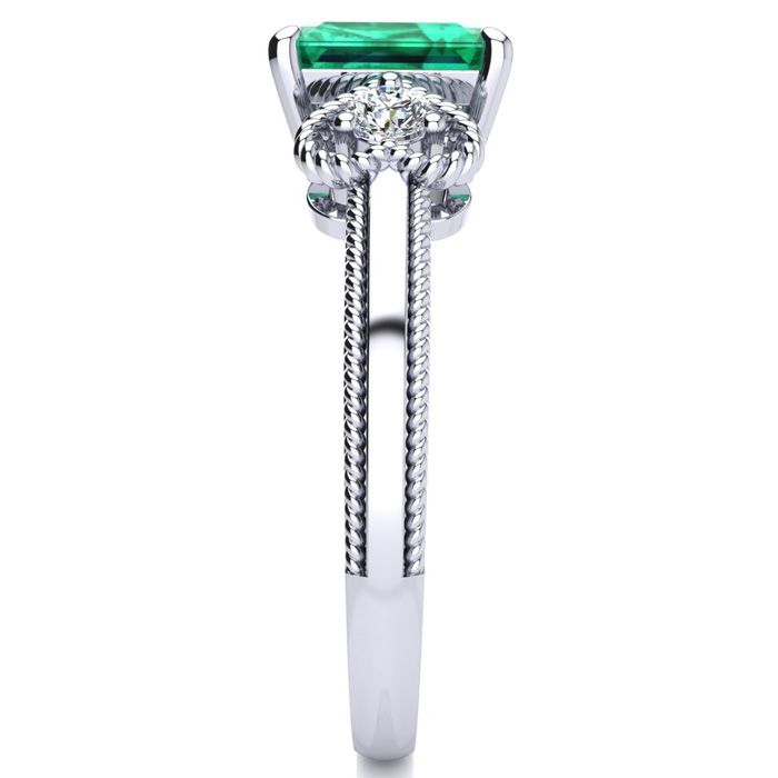 1 Carat Emerald and Two Diamond Heart Ring In 10 Karat White Gold
