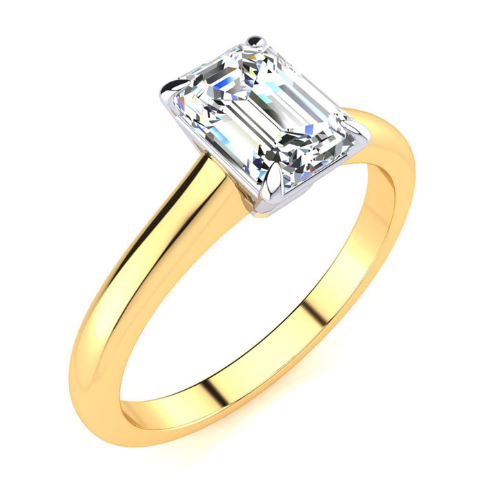 1 Carat Natural Emerald Cut Diamond Solitaire Ring In 14K Yellow Gold