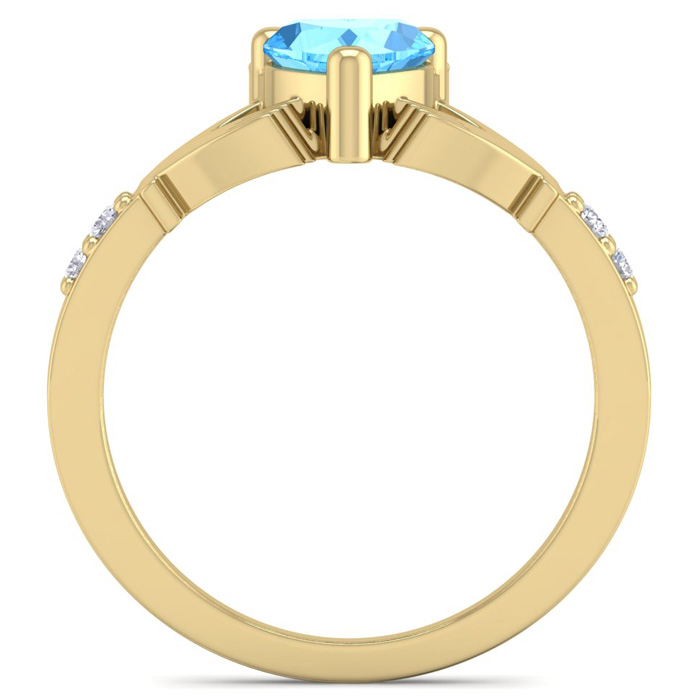 1 Carat Heart Shape Blue Topaz and Diamond Claddagh Ring In 14 Karat Yellow Gold