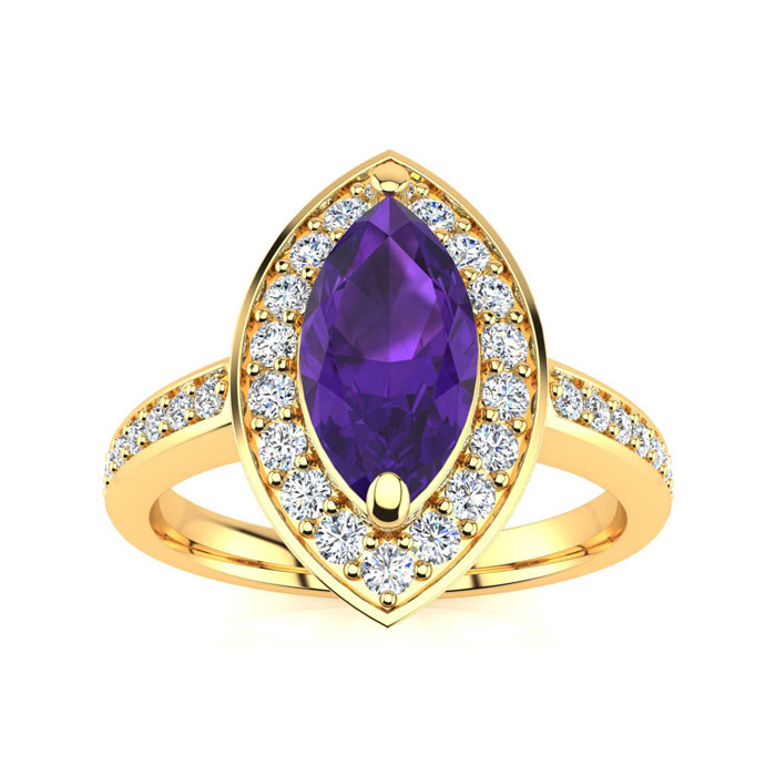 1 Carat Marquise Amethyst and Diamond Ring In 14 Karat Yellow Gold