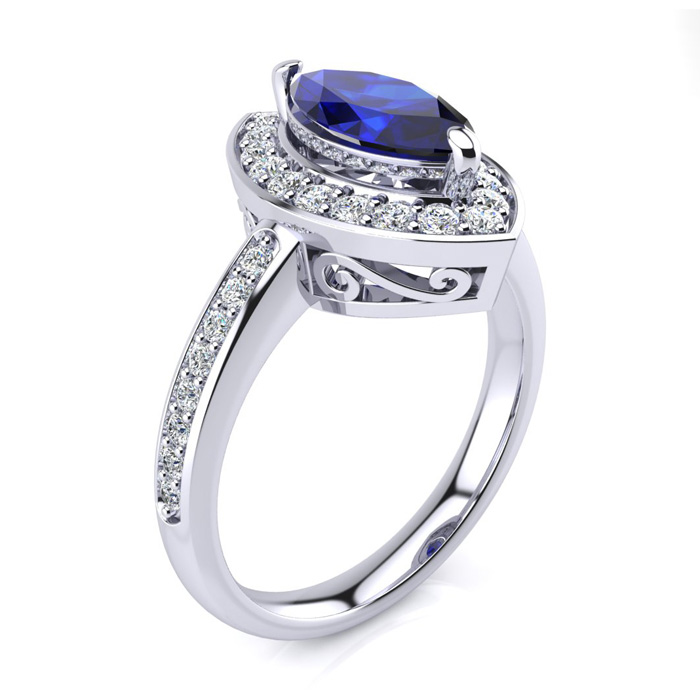 I love this marquise sapphire and diamond ring, it looks antique and very expensive! The diamonds sparkle against the deep red ruby and is eye catching.