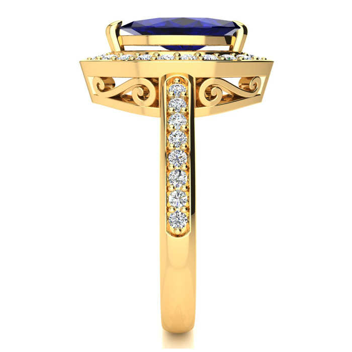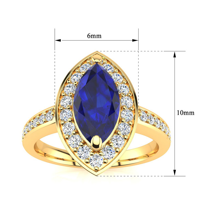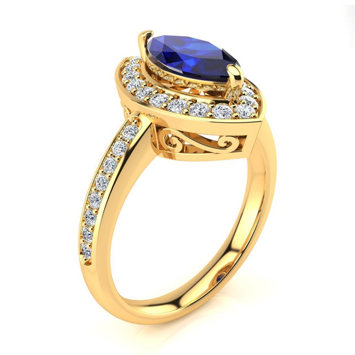 1 Carat Marquise Blue Sapphire and Diamond Ring In 14 Karat Yellow Gold