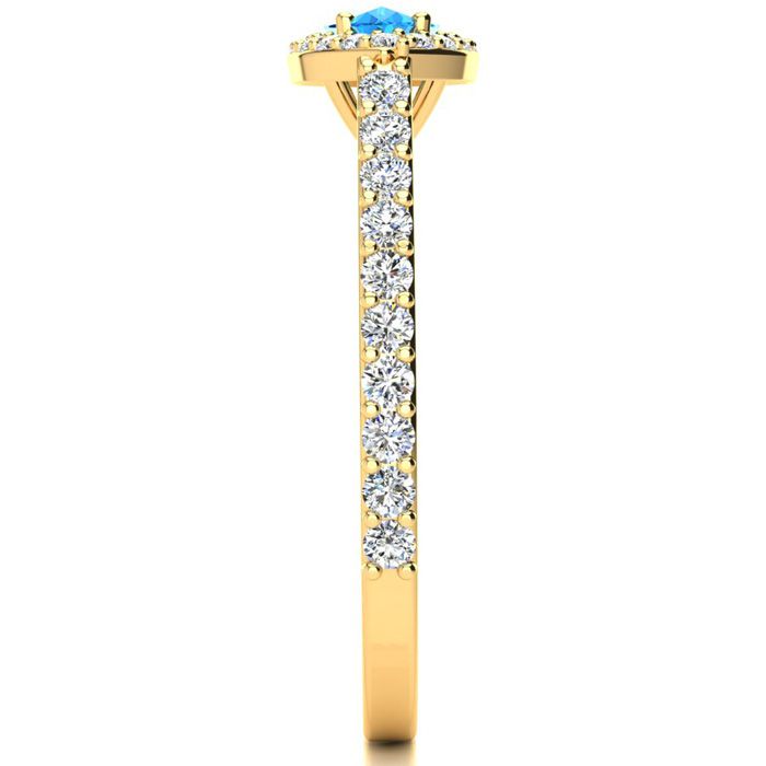 Retrograde Birthstones™ 1 Carat Marquise Shape Blue Topaz and Halo Diamond Ring In 14 Karat Yellow Gold