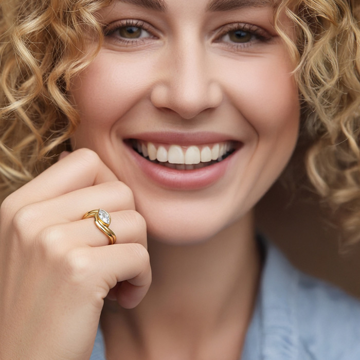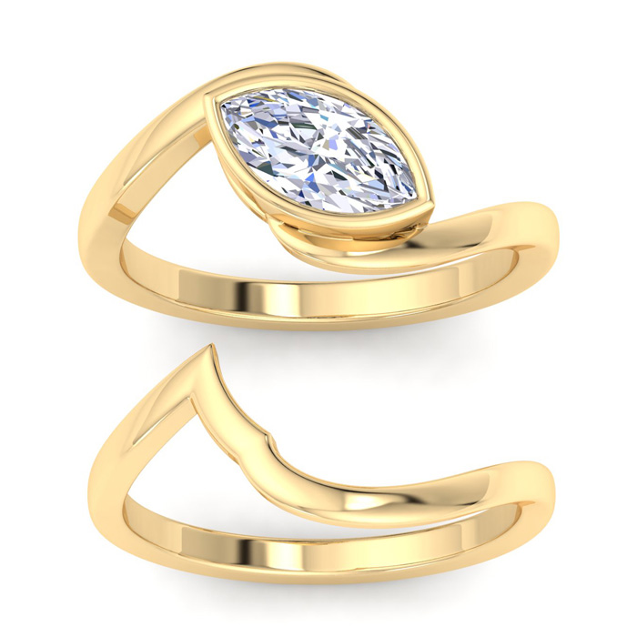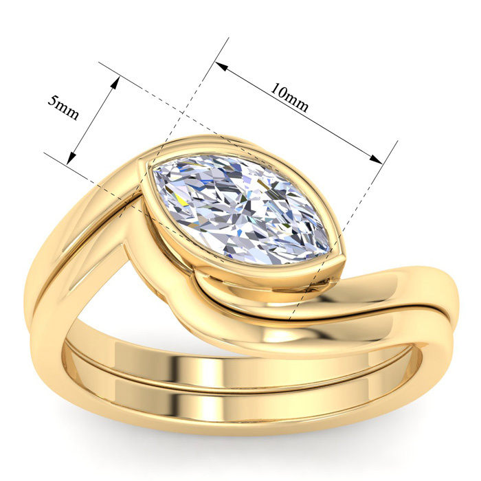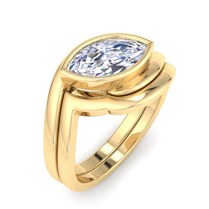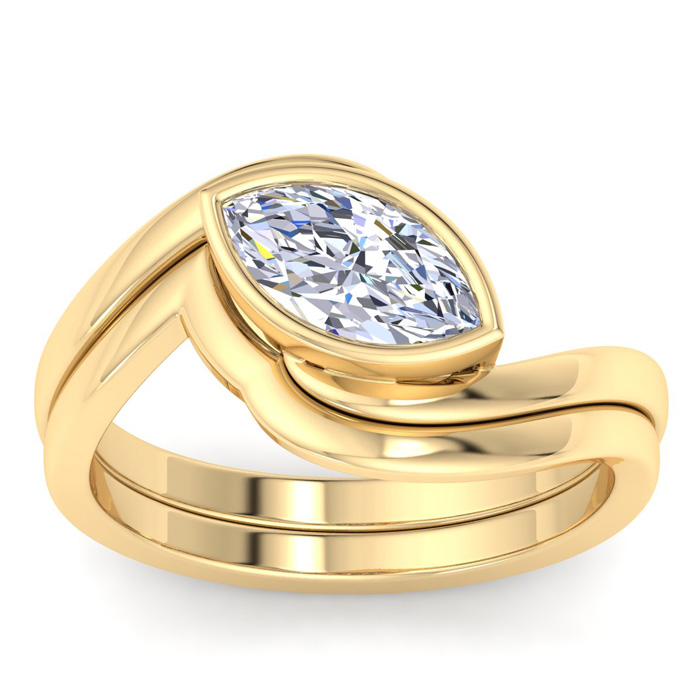 1 Carat Marquise Shape Lab Grown Diamond Ring With Matching Band In 14K Yellow Gold, Solitaire Bezel Setting
