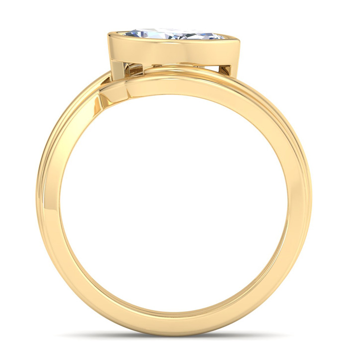 This lab grown diamond ring features a 1 carat marquise shape center lab grown diamond in G-H color, VS clarity in a sideways bezel setting. This ring is in 14 karat yellow gold. This ring includes a matching gold band.