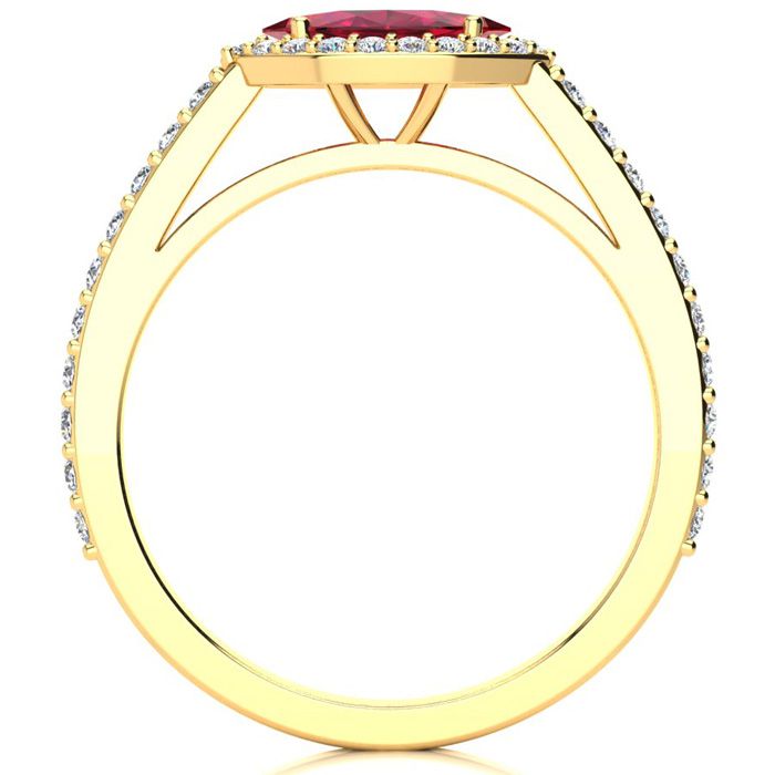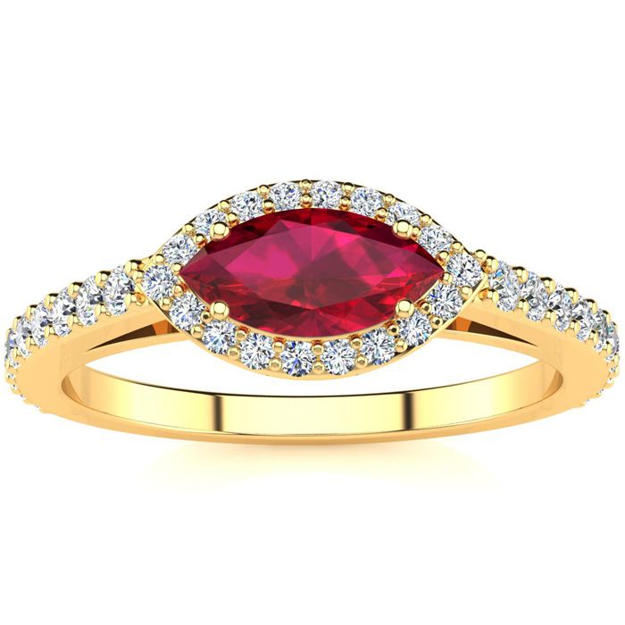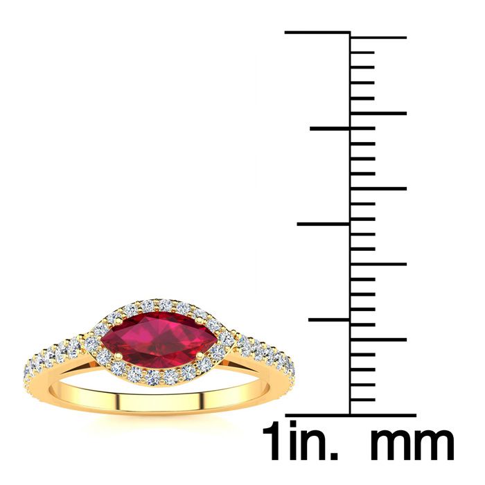 1 Carat Marquise Shape Ruby and Halo Diamond Ring In 14 Karat Yellow Gold