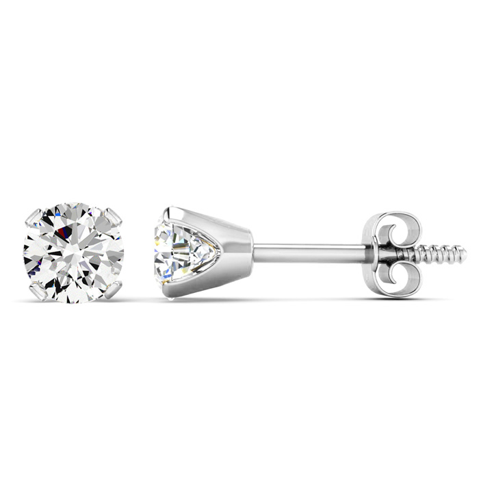 These i wear in my upper ear piercing, and they stay there. I love the size. The photo in the ad is not what the actual size looks like on. These are 1 carat TOTAL weight, that ½ a carat in each earring, which is what i wanted. I also wanted the screw back. I did have to call to request another backing to screw on, the other was smashed. They sent me a set of screw on backs, push on backs, and silicone push on backs. So customer service was awesome! --BeachBum.
