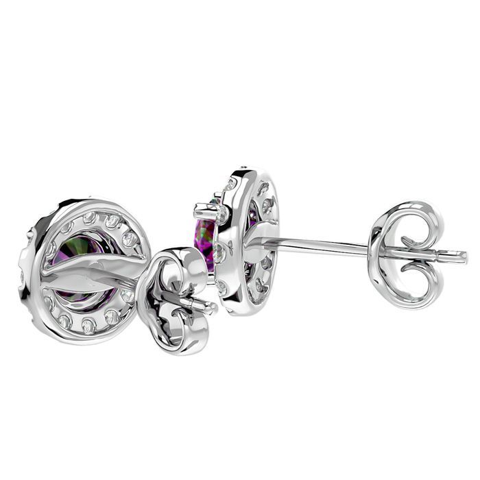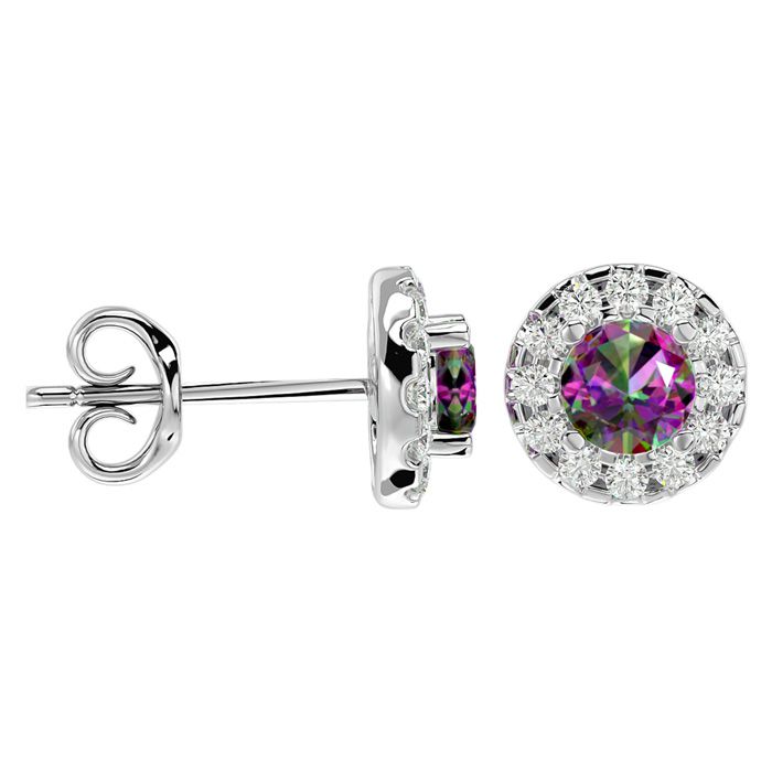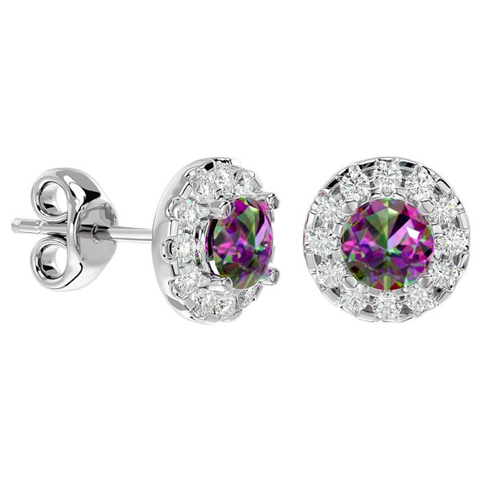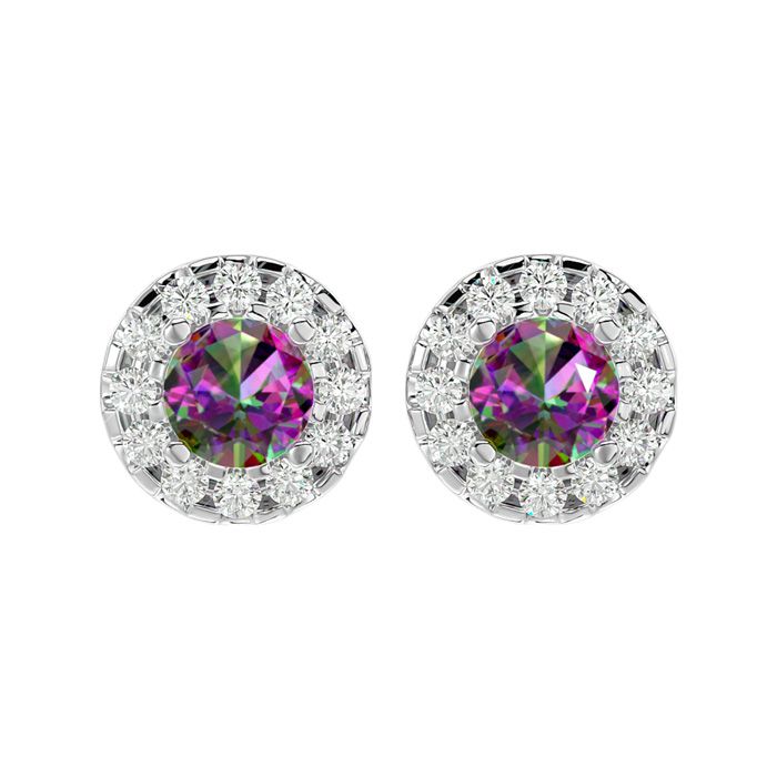 1 Carat Mystic Topaz and Halo Diamond Stud Earrings In 14 Karat White Gold