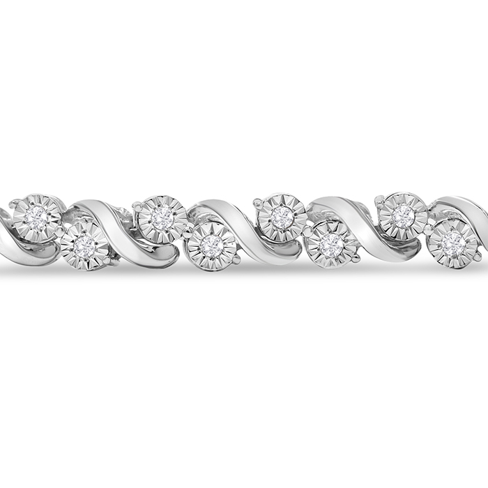 1 Carat Natural Diamond Switl Tennis Bracelet In Sterling Silver, 7 Inches