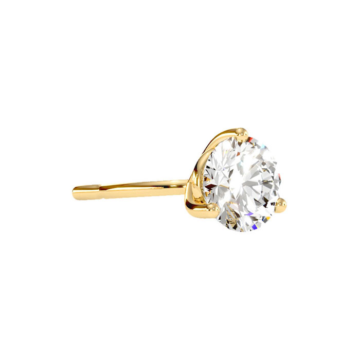 1 carat diamond stud earrings in martini setting in 14 karat yellow gold. Diamond color is H-I, diamond clarity I1-I2. Each earring measures 5mm. Earrings have secure post with friction backs.