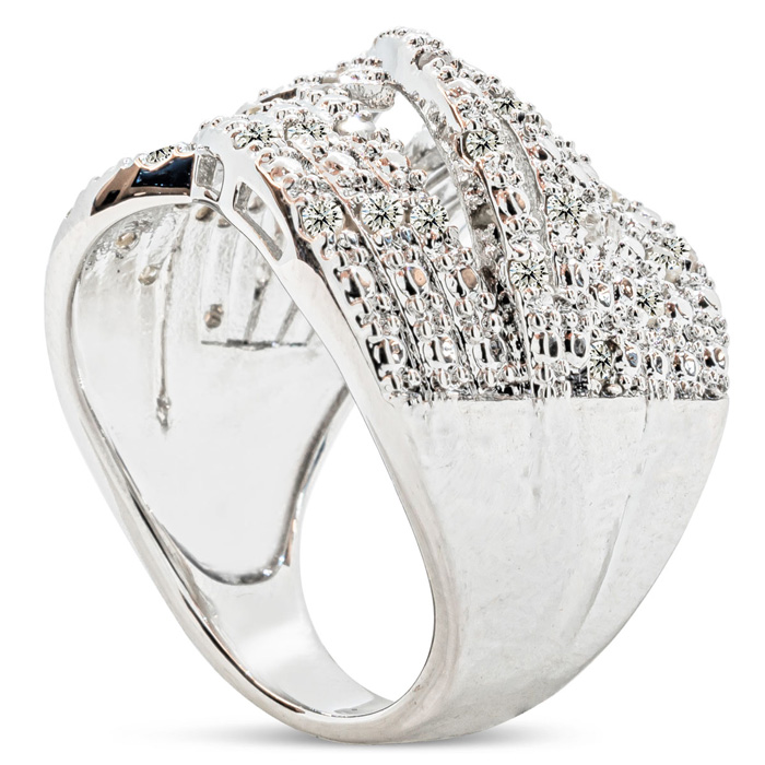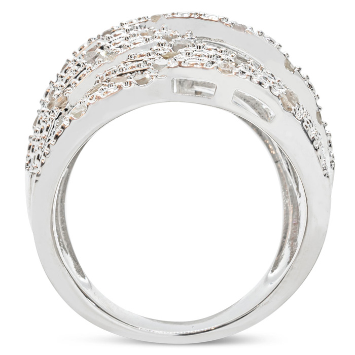 This ring is STUNNING!! I love it... be aware that the white gold lamination wears off if you wear it every day and the brass shows I have had this ring and have worn it dailey for 8-10 weeks. the white gold has worn off on the underside of the ring....but I don't care and still wear it the same...no one can see but me....I still love it....
