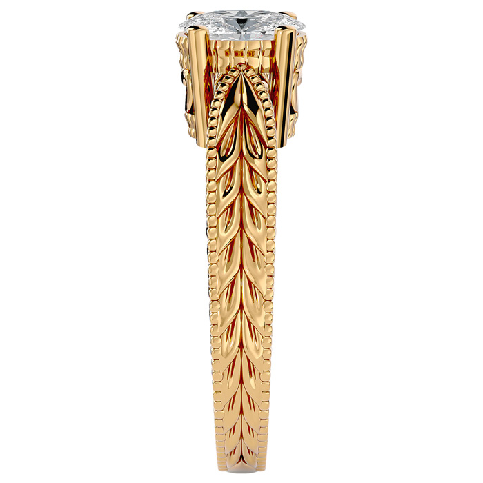 1 Carat Oval Diamond Solitaire Engagement Ring with Tapered Etched Band In 14 Karat Yellow Gold