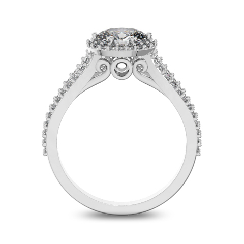1 Carat Natural Oval Halo Diamond Engagement Ring in 14 Karat White Gold, Split Shank