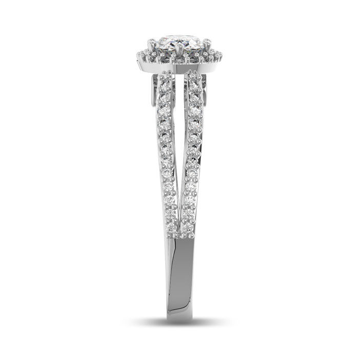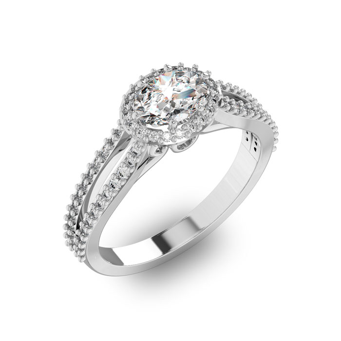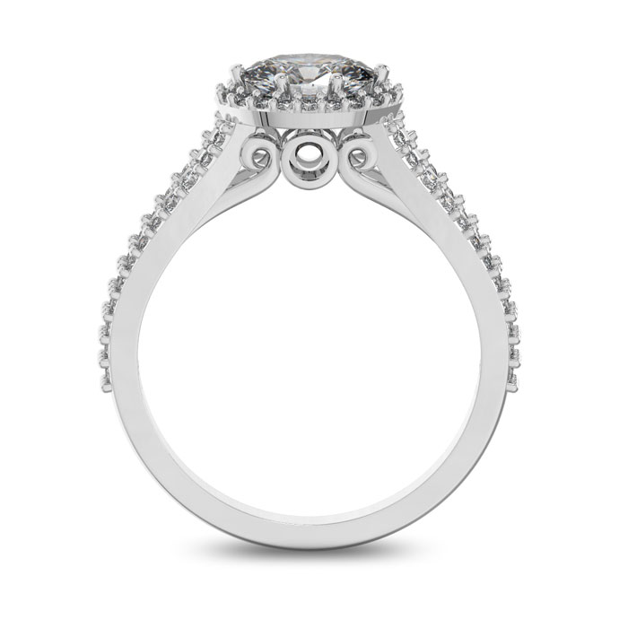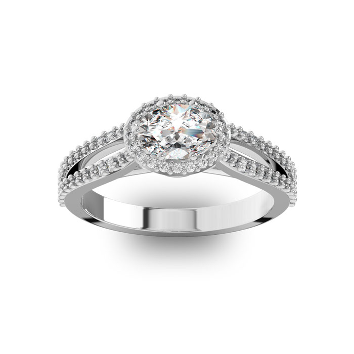 1 Carat Natural Oval Halo Diamond Engagement Ring in 14 Karat White Gold, Split Shank