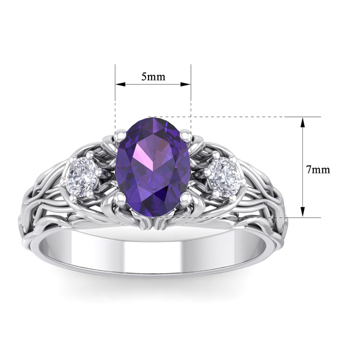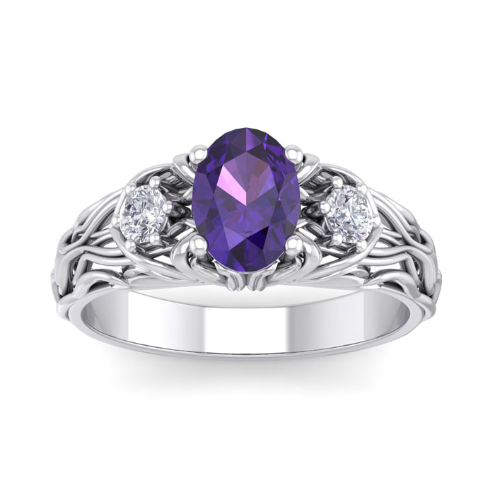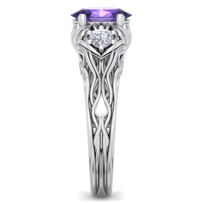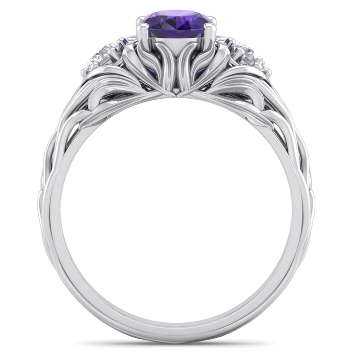 1 Carat Oval Shape Amethyst and Diamond Intricate Vine Engagement Ring In 14 Karat White Gold