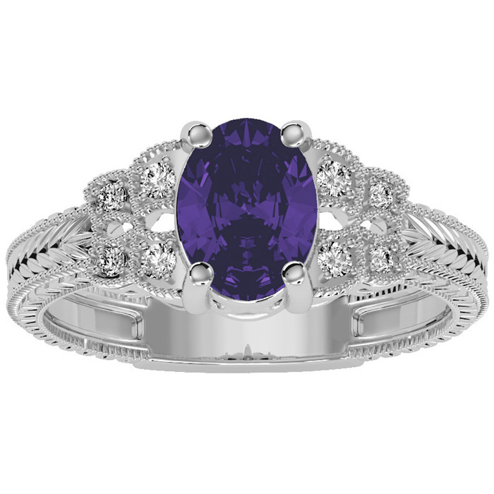 1 Carat Oval Shape Amethyst and Diamond Ring In 10 Karat White Gold