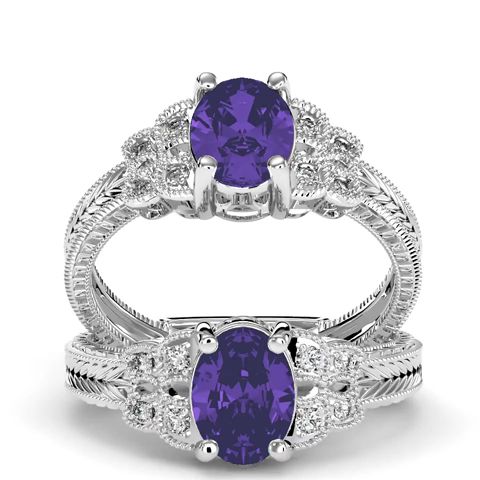 1 Carat Oval Shape Amethyst and Diamond Ring In 10 Karat White Gold