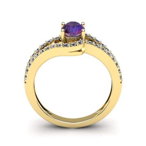1 Carat Oval Shape Amethyst and Fancy Diamond Ring In 14 Karat Yellow Gold