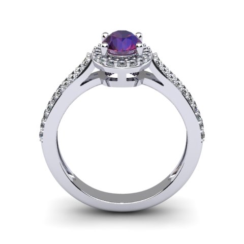 1 Carat Oval Shape Amethyst and Halo Diamond Ring In 14 Karat White Gold