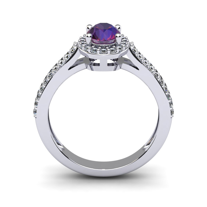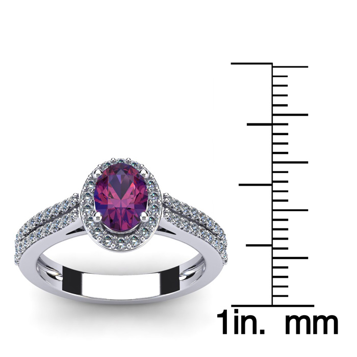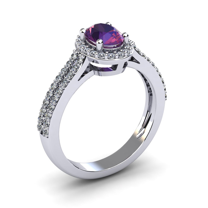 1 Carat Oval Shape Amethyst and Halo Diamond Ring In 14 Karat White Gold