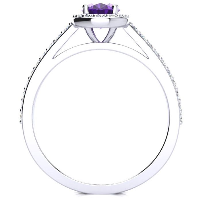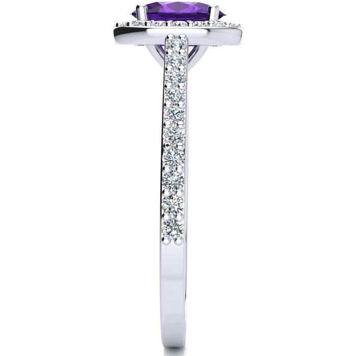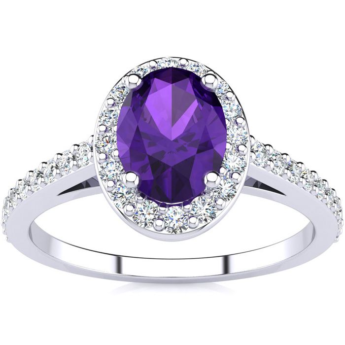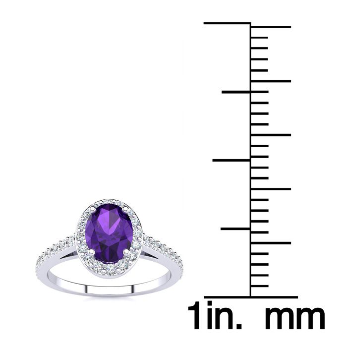 1 Carat Oval Shape Amethyst and Halo Diamond Ring In 14 Karat White Gold