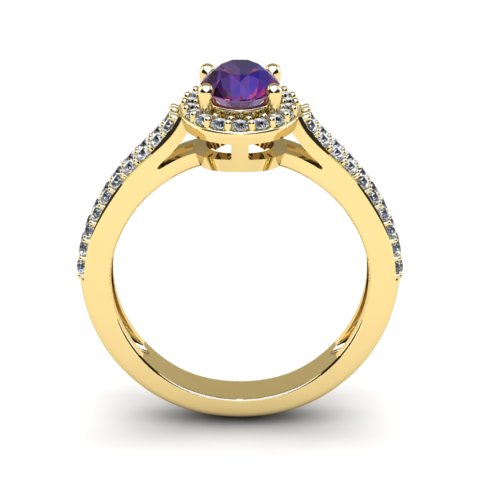 1 Carat Oval Shape Amethyst and Halo Diamond Ring In 14 Karat Yellow Gold