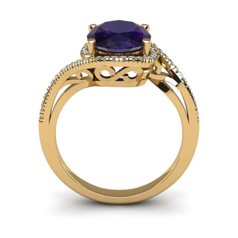 1 Carat Oval Shape Amethyst and Halo Diamond Ring In 14 Karat Yellow Gold