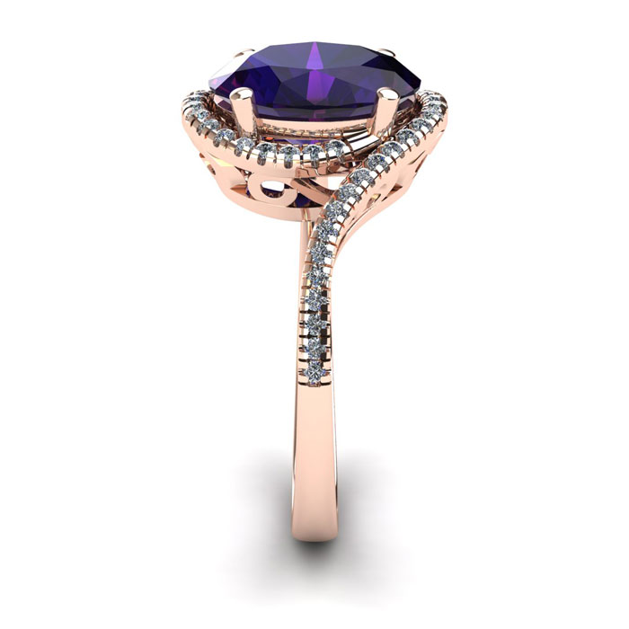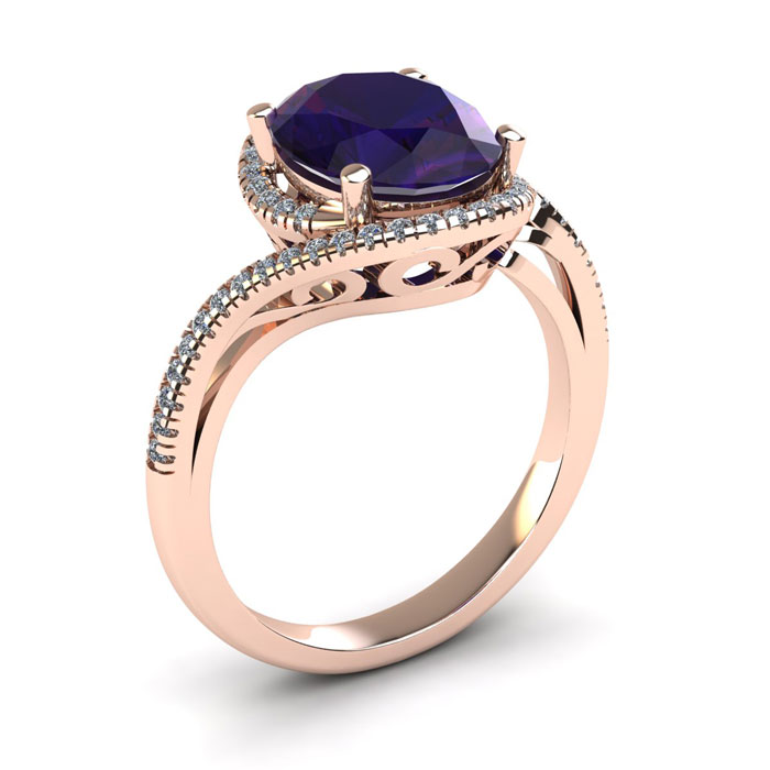 1 Carat Oval Shape Amethyst and Halo Diamond Ring In 14 Karat Yellow Gold