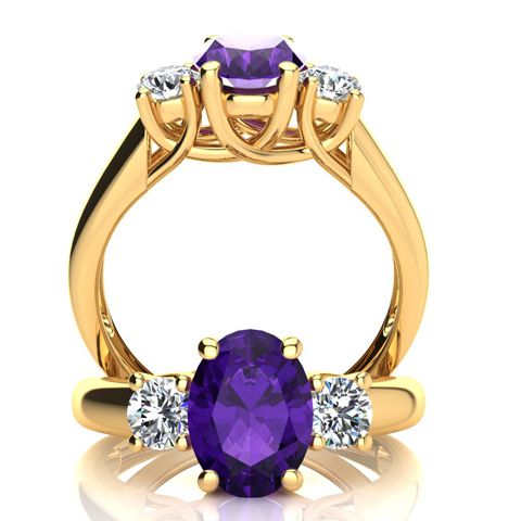 1 Carat Oval Shape Amethyst and Two Diamond Ring In 14 Karat Yellow Gold