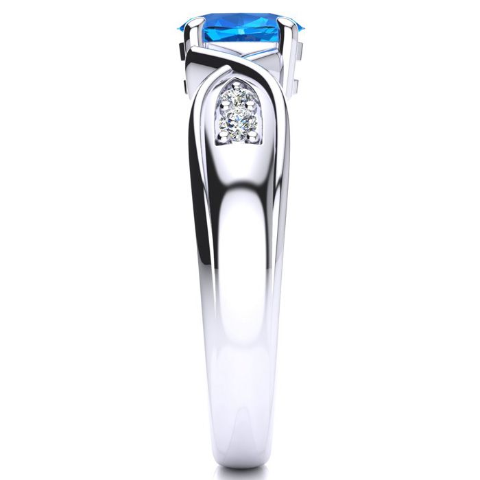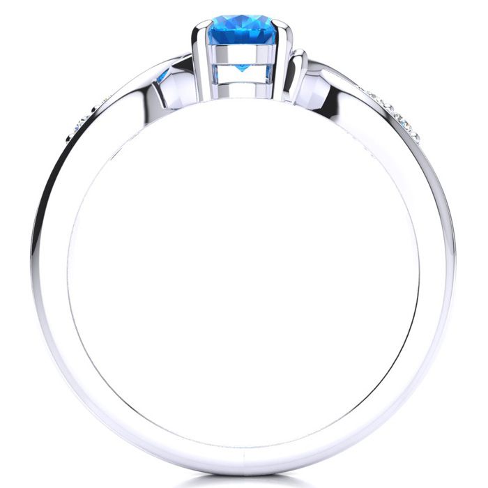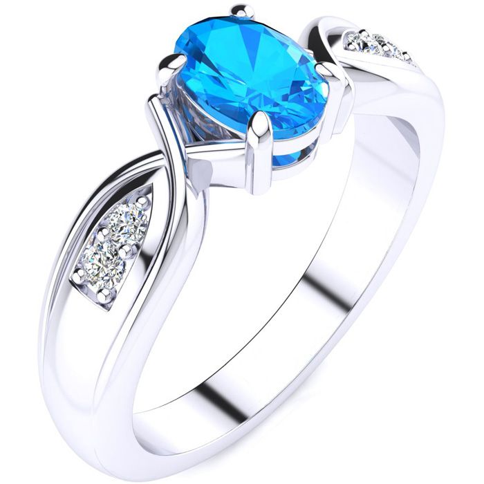 1 Carat Oval Shape Blue Topaz and Four Diamond Ring In 10 Karat White Gold